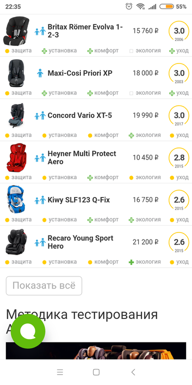 А я доверяю своим ощущениям. Кресло наше имеет высокий краш тест. И куплено со всеми документами и проверили подлинность. Но нет ощущения безопасности. И ребенку в нем неудобно,когда спит,шейка затекает.Этот краш и оказался решающим при выборе нашего кресла. А теперь жалею.Но у каждого свои предпочтения. Чего уж спорить. Но кресло поменяю.