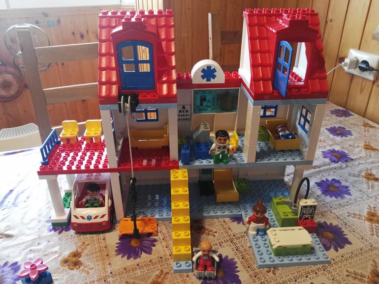 Лежат уже) микрофон на стойке и гитара, лего дупло большой госпиталь, ну, и еще пол антресоли