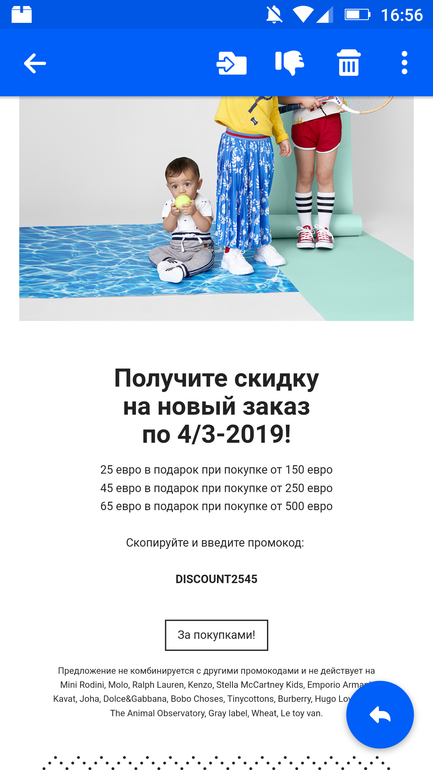 Вера в Выбор товаров 7 лет БШ Распродажи. Скидки. Акции. Посмотрите еще 20 записей на эту тему Отменить Ответить Happy Berry А 50 евро вообще за покупку от 200 давали ( расстроена 😢 27.02.2019 Ответить Вера Зажмотили! 27.02.2019 Ответить Happy Berry Блин(( как-то не очень((( столько ждала это акцию. Но раньше было: при покупке от 300 евро, скидка 75 евро. 27.02.2019 Ответить Кораблик Onlinerade неплохи цены на некоторые позиции Чаты Беременных Выберите чат: Январята-2026 Февралята-2026 Мартята-2026 Апрелята-2026 Майчата-2026 Июнята-2026 Июлята-2026 Августята-2026