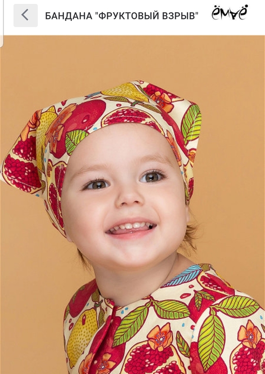 Ну и косыночка... Повязка повязкой, но это ведь просто баловство! Она ни от чего не защищает. Ой, а вдруг летом доче напечет голову? Ей в мае годик. В июне, наверное во всю будет носить такой модный аксессуар... В общем, заказала еще косыночку, которую на сайте называют банданой.