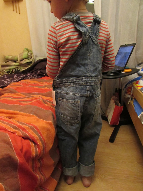 да видно,что он вам большой.по мне если хотите такой небрежности,то тогда стоит вам брать 122.по мне НМ ни когда не маломерят чаще всего идут размер в размер сколько не сталкивалась.а в последний раз взяла комбез плей тудей.так мне очень понравился и джинса кстати не хуже.