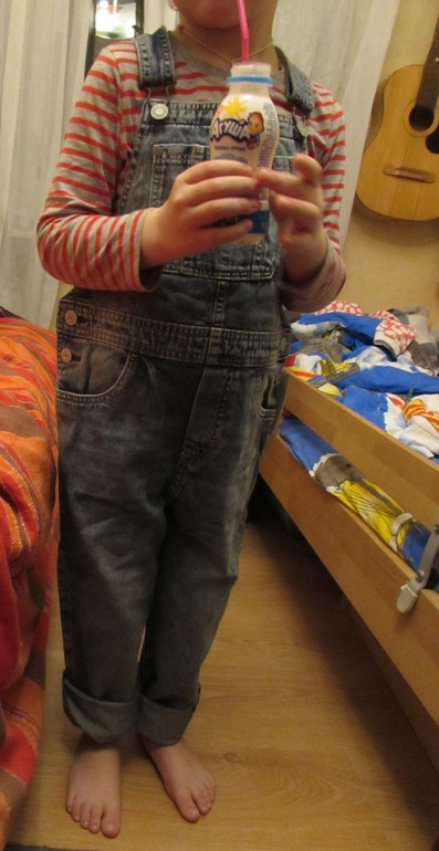 НМ...тоже когда купили померила утонул в нем, а потом через пару месяцев к лету одели с кроссовками, подверкнули, лямки на максимум подтянули и вроде нормально, относили... Мне кажется у вас не так уж и ужасно смотрится... У него ещё джинсы плотна жёсткая бока колом торчат, а когда носить начали вроде ничего...