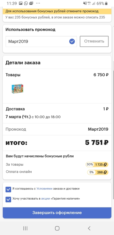 ИгрушкиПроверяйте, в карточке товара значится 25%, но при оформлении увеличивается до 35%. На почту пришло письмо со странными бонусами (15%), но в личном кабинете все честно. После длинных переписок мне сказали, что все же 35%. Получается выгодно с промокодом март2019.