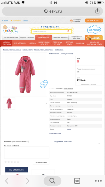 У меня тоже есть заказ, лежит в тц"Парус" Куркино. По 12.03. цена 1742руб. Размер 98. Ветровой комплект, без утеплителя.