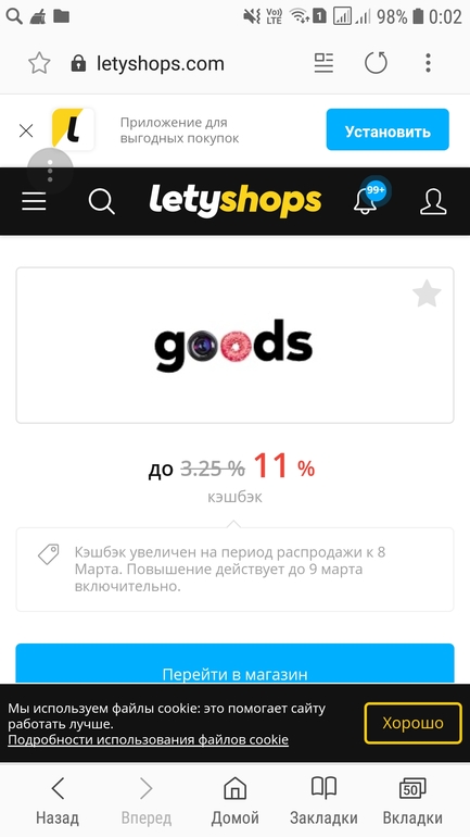 Спасибо. Взяла через гудс, там тоже этот магазин торгует, еще кэш 35% и у лети еще 10% примерно, правда лети еще не начислил
