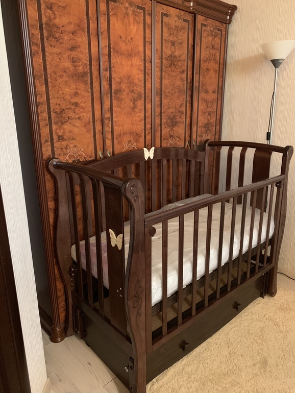 Кроватка любая крепкая и без маятника,т к потом и оч скоро деть будет в ней скакать))). Мне была важна возможность опустить со временем дно кроватки как можно ниже,что пригодилось,когда дочь начала вставать в кроватке и позже,когда сняли переднюю стенку.