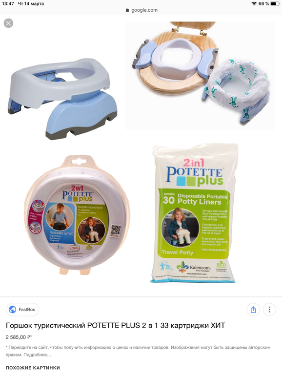 Пользовались таким в поезде и в отеле, удобно, дочке больше понравилась силиконовая вставка, от пакетов отказалась. Покупала на озон по скидке.
