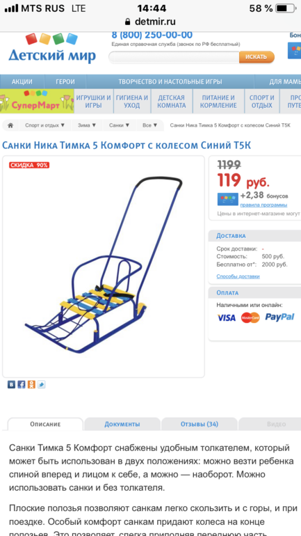 Санки в ДМ, 119 руб