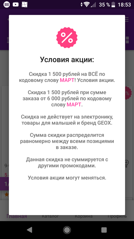 Una в Выбор товаров 7 лет Вайлдбериз Распродажи. Скидки. Акции. Рейма точно участвует, Лесси Посмотрите еще 20 записей на эту тему Отменить Ответить Ирина хорошая акция - без нее 6 тыс, с ней - 8 тыс. 18.03.2019 Ответить Донна Роза у меня с этим промокодом наоборот все в корзине подорожало на 200-300р. 18.03.2019 Ответить Ирина По-моему, это какая-то скидка наоборот)) У меня итоговая сумма наоборот увеличивается после применения промокода 17.03.2019 Ответить Natasha выгодно брать те товары, на которые изначально промокод не срабатывает. Типа утюгов, паровых швабр и т.д. 18.03.2019 Ответить ДМ , не удержалась Merries в Виктории Чаты Беременных Выберите чат: Январята-2026 Февралята-2026 Мартята-2026 Апрелята-2026 Майчата-2026 Июнята-2026 Июлята-2026 Августята-2026