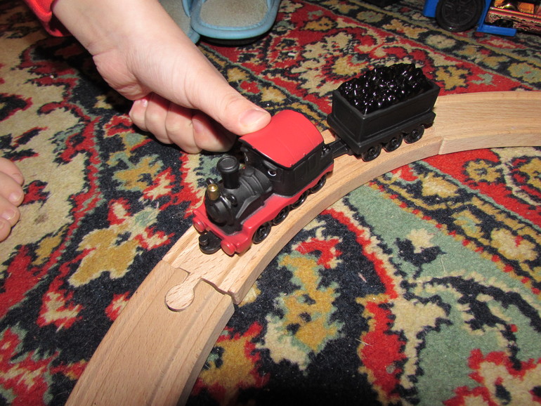У нас трек Чаггингтон на антресоли, но он неразборный, в том плане, что каждый день его хлопотно разбираться собирать, думала на деревянные ЖД перейти