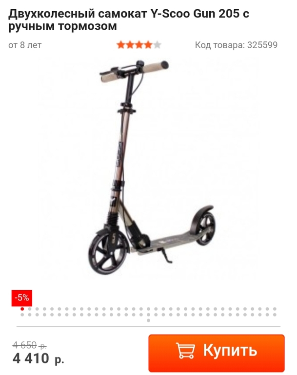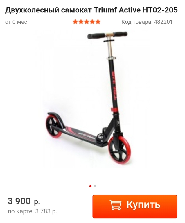 Я бы не изменяла и купила бы проверенную фирму, разница в цене не существенная. Но хорошая мысля приходит опосля. У нас был Y-scoo маленький трехколёсный. Сын из него вырос, побоялась покупать двухколёсный (а зря) и купила Триумф трехколёсный побольше. Понравился цвет и колеса светятся. Отзывы вроде неплохие были. Но в итоге концу сезона сломался складной механизм, которым почти не пользовались. А после зимы достали, у самоката руль оторвался 🙈 Как такое могло случиться, если самокат несколько месяцев никто не трогал. Хорошо что все произошло, когда мы ещё не успели на улицу выйти. Боюсь представить чтобы было, если бы руль вылетел во время катания на самокате. Конечно не значит, что со всеми самокатами так будет. Но я больше эту фирму не возьму.