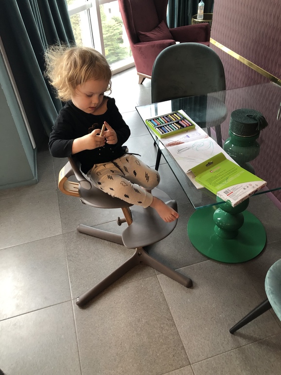 У нас негде ставить детские столы, поэтому стул для самостоятельного залезания))