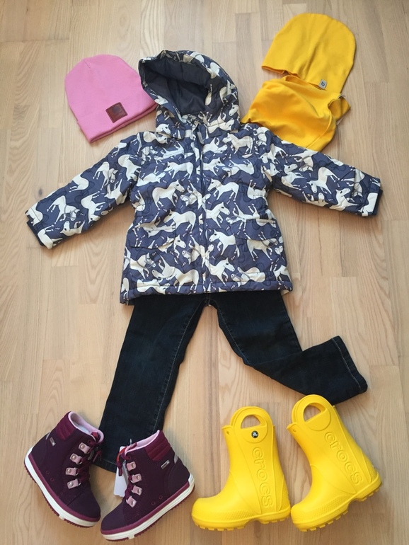Также есть куртка Name it c небольшим утеплением, её же можно в ТЦ/театр/гости одеть. Лошадки мне нравятся)