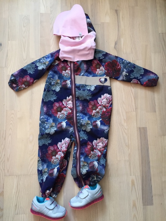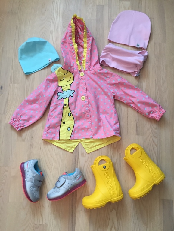 Для более теплой погоды есть ветровка х/б с али, мне не очень нравится, но покупать уже ничего не буду, доносим её. И комбинезон рейма тривор, внутри флис; в городе с кроссовками найк, на даче как вариант - с сабо crocs на меху.