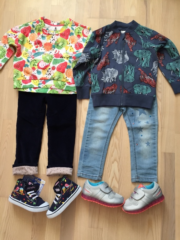Только хвасты! (одежда и обувь)С ростом количества детей стала путаться в одежде и обуви: что куплено, чего не хватает, до чего не доросли/переросли. Решила систематизировать гардероб, разобрав по размерам и сезонам. Для составления каталогов времени нет, пока только сфотографировала и попробовала сразу составить комплекты. Будет много фото)