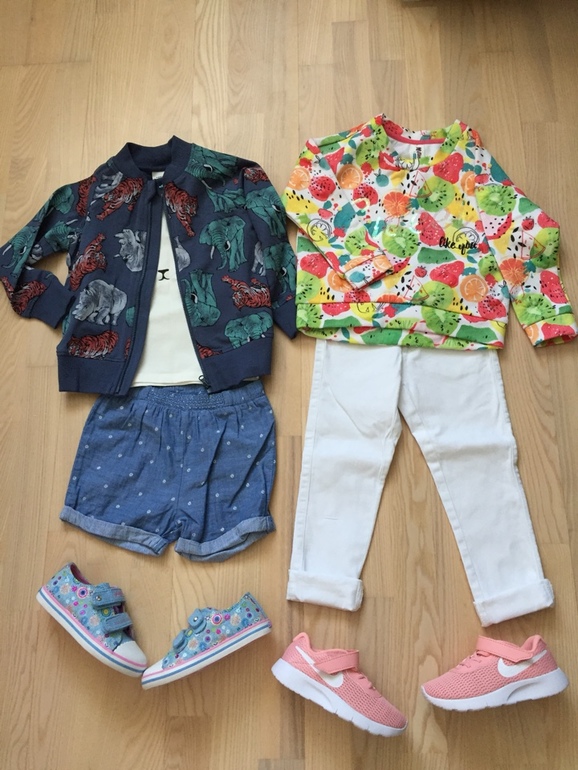 Когда совсем тепло, достаем лонги, легкие джинсы и лосины. Лонг с кошками - mini rodini, кроссовки найк, летние кеды паблоски.
