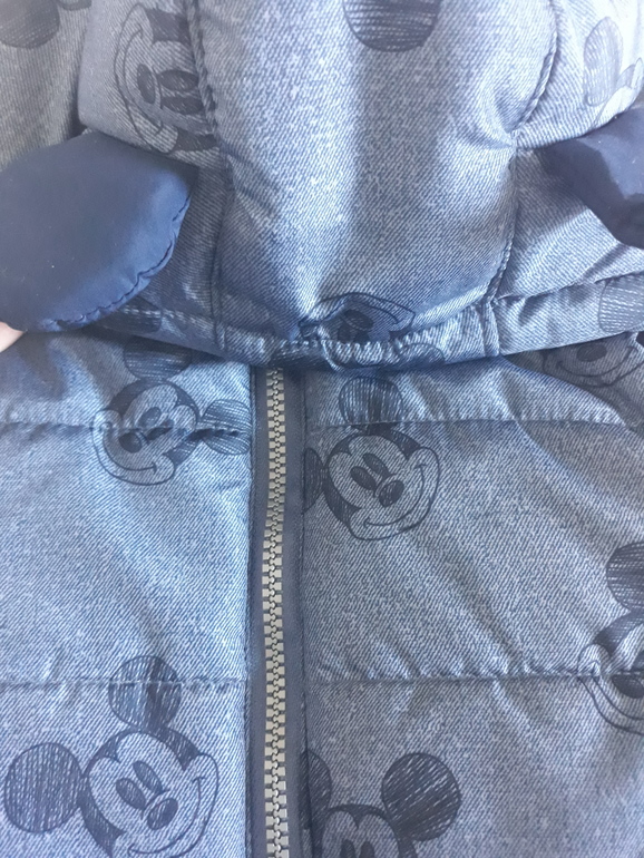 Длина 38, по помышкам 34 в нашем 92 размера, тоже микки расцветка чуть другая, но вроде они из одной серии, капюшон на липучках)