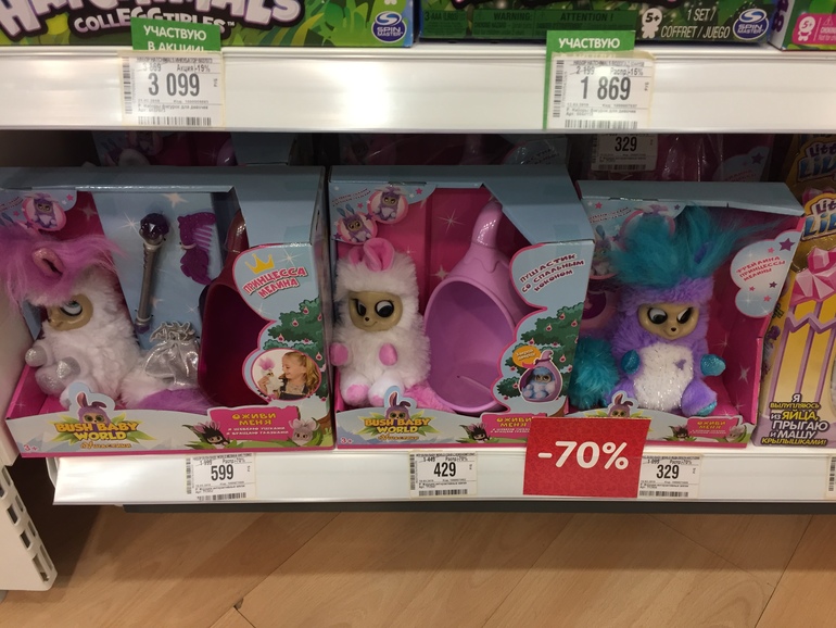есть вот такие пушистики-ушастики - просто фигурки за 270, большой набор с принцессой за 600 и за 400 ее фрейлины. эти зверьки умеют вращать глазами и двигать ушами - на затылке у них выемка и ребенок пальцем сам "оживляет" питомца. дочке дарили принцессу, она ее очень любит, докупила ей подруг)