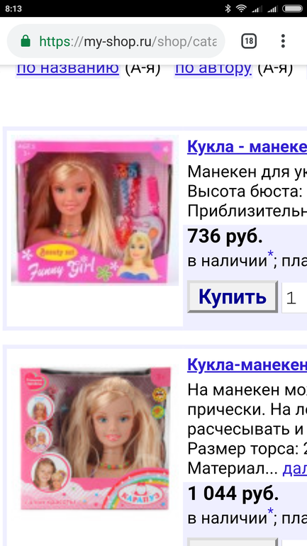 вы изначально говорили о парикмахерских манекенах?. Это не то что ищу. Ребенку 6 лет и пока рано покупать те что рекомендуете. Там ещё и маленький брат, поэтому однозначно ищу игрушку всё-таки.