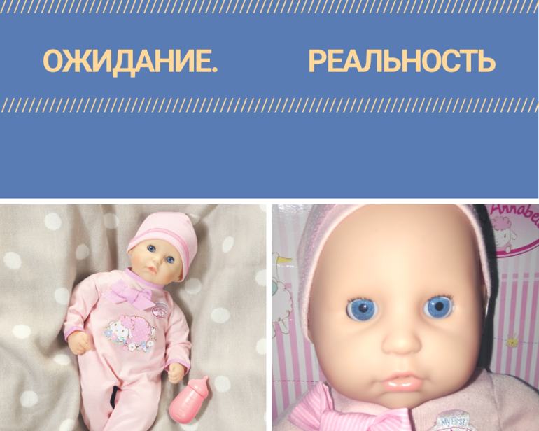 Это на фото ещё хорошо вышло. Пупс как будто с похмельного утра или почки отказывают. Вообще ничего общего с картинкой. Страшный.
