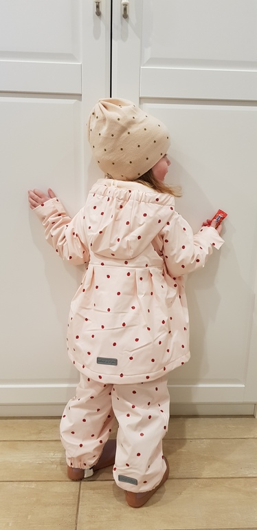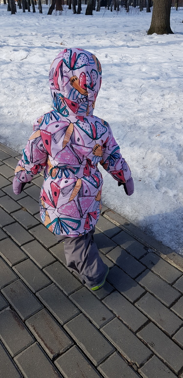 1. Куртка (мембрана) Button Blue, шапочка Button Blue, брюки Reima, сапожки Crocs. В данный момент в саду, вместе с дочерью)) Поэтому фото с прогулки.