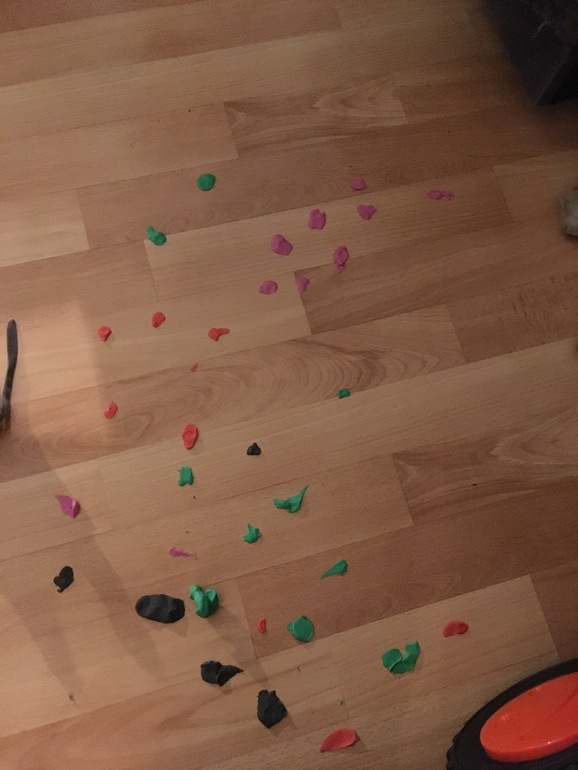 Дня 2 назад убиралась на кухне, ребенок где-то притих.Думала, с мужем сидит. А он нашел пластилин, но листочки для заплаток не нашел. Малыш не растерялся и нашел выход 😆