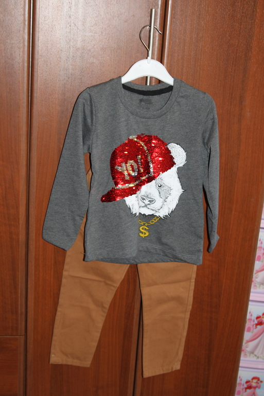 Это малая толика, еще есть темно - синее (цвет флотский) брюки, серые брюки, светлые джинсы, футболок штук 5, и лонги тоже 5 шт. Три спорт. костюма. Три фуфайки, и жакет на прохладную погоду. Фоткала на скорую руку с помощником, который наровил всё померить и сложить по - своему.