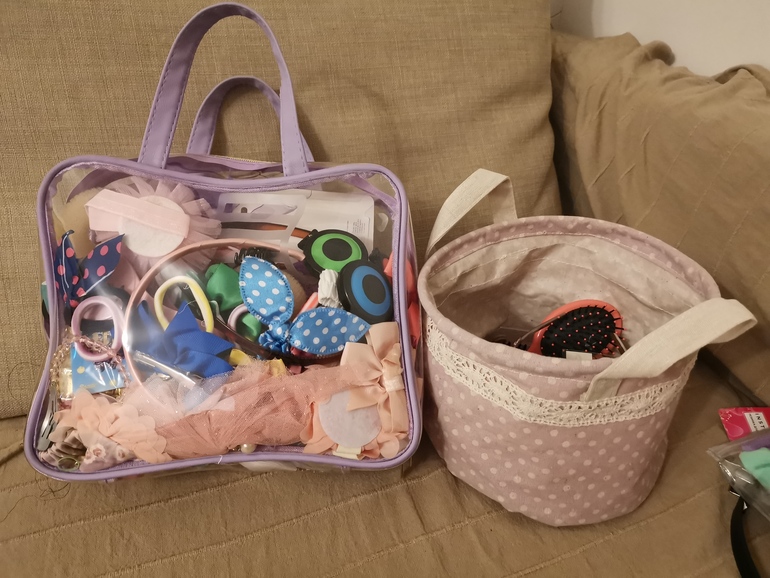 У нас корзинка на каждый день и прозрачная сумка со всякими бантиками. Мне очень удобно😊