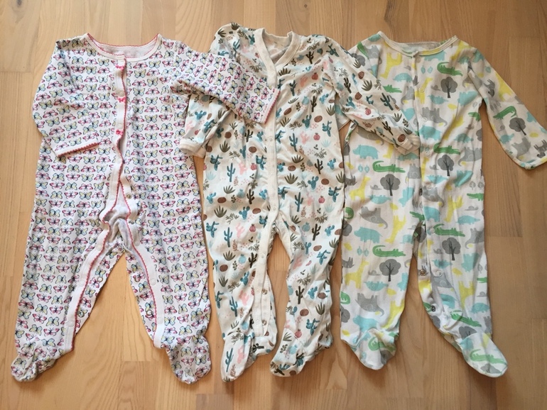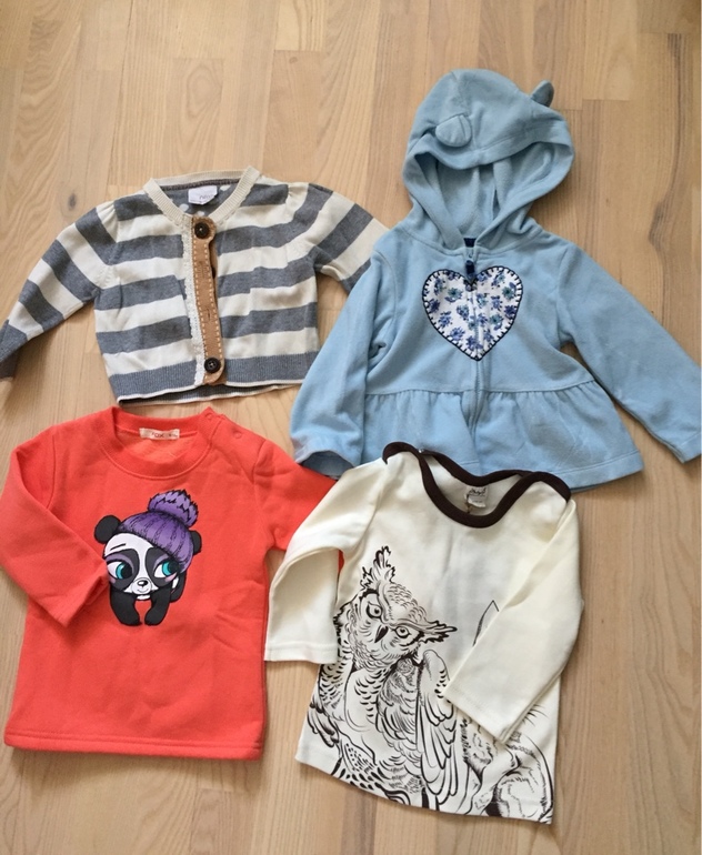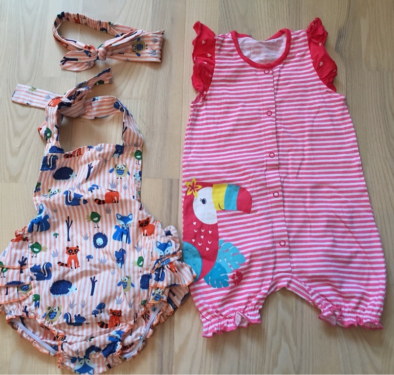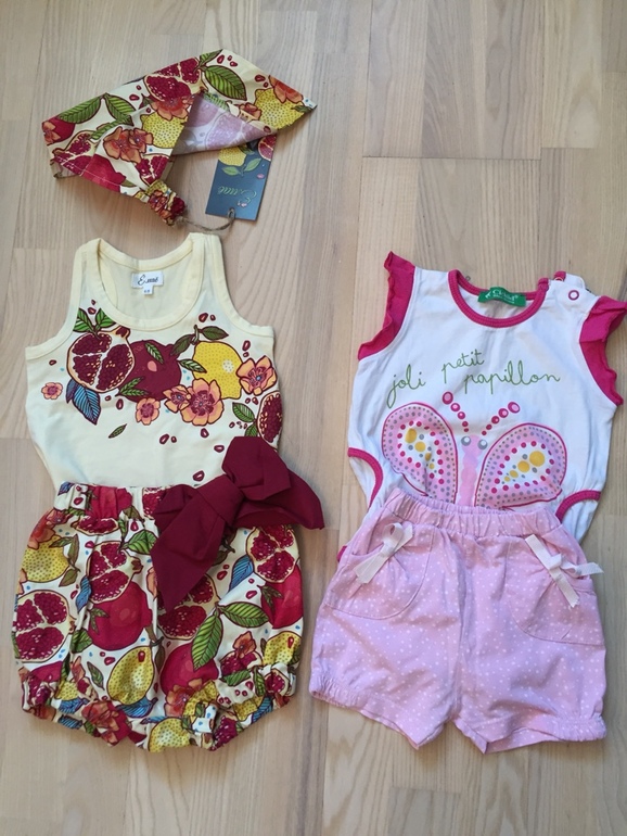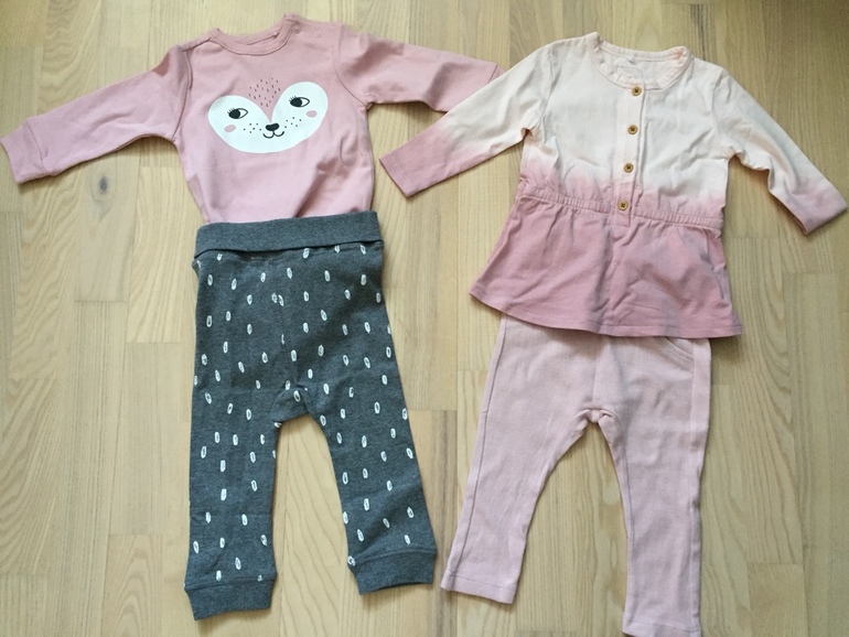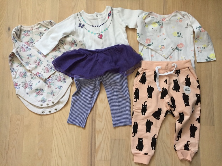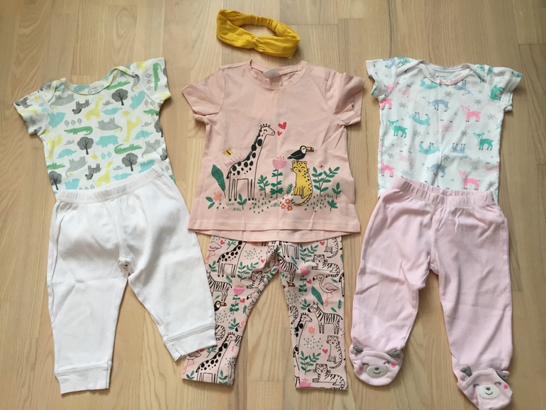 Разобрала одежду младшей дочки, которую планируем носить с мая по август. Что-то осталось от старшей сестры, есть даже вещи с бирками - не успели поносить, и немного новых купила, не удержалась)) Сначала казалось что вещей много, а по факту на возраст 7-10 месяцев мало маек/бодиков с коротким рукавом "на каждый день". Вводим прикорм и зубы режутся, слюни текут, поэтому сейчас переодеваемся несколько раз в день. В общем докуплю потом маек на летних распродажах. И обуви почти нет никакой, только носки.