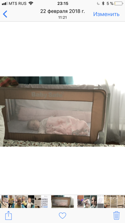 Я ещё вспомнила, не так было, мы не убрали борт, когда она спускаться научилась. Мы плюнули на борт и опустили наш матрас на пол. Смотрела сейчас фотки- вспомнила) но какое-то время был рабочий вариант такой)