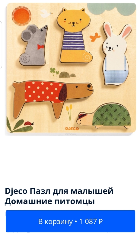 у djeco, конечно, очень качественные тактильно и визуально приятные игрушки. У нас есть пазлы-противоположности, лото, резиновые уточки, пазл "дом зайцев" (не устояла, до сих пор ребенку нравится), мемо и тд. Но пазлы-вкладыши очень быстро осваиваются ребенком, играют в них недолго. Если у вас уже есть аналогичные, то много их не нужно.
