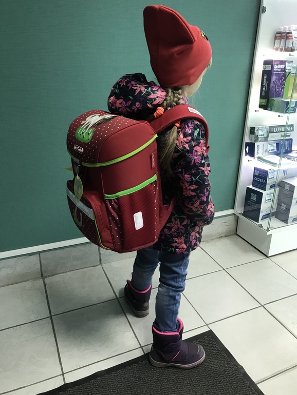 Но он быстро надоел дочке и ей захотелось взрослый рюкзак, поэтому в середине 2 класса взяли вот такой