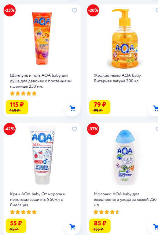 В Детском мире скидки на шампунь и гель для девочек Aqa baby