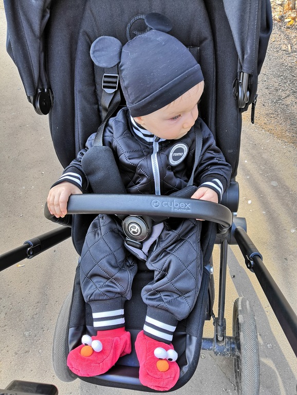 моя чуть постарше, гуляет в тикотяжном костюме (внутри фактура ткани с петельками), под низ памперс и хб футболка. На ноги кроссы (но она не спит в коляске). На всякий случай легкая жилетка лежит :) Как определяю что ей тепло? трогаю грудь и спину между лопаток, руки выше локтя. Все теплое и в целом ребенок не выглядит как цуцик - значит не мерзнет)