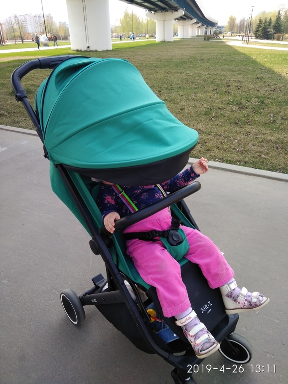 Anex air-x. Завал спинки конечно есть, но на мой взгляд он небольшой. Само сиденье сделано чуть с наклоном внутрь. Дочь на ремнях вроде не висит, ткань не скользит. На ощупь приятная. Подножку делаю на 45 градусов, ножкам удобно. По цветопередаче - правильнее где фото на улице. Плечевые ремни отстегнула и подвернула.