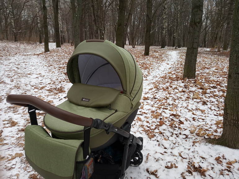 Коляска наша первая, ездили с рождения (июль) до марта в люльке: большая и вместительная, ребенок еще влезал в люльку в теплом комбезе весной.