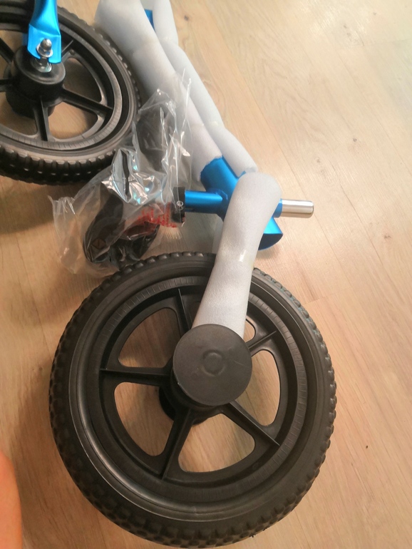 Теперь сам беговел. Из трех коробок одна была повреждена. Её я и открыла. Беговелы частично разобраны, но на каждой детали защита.