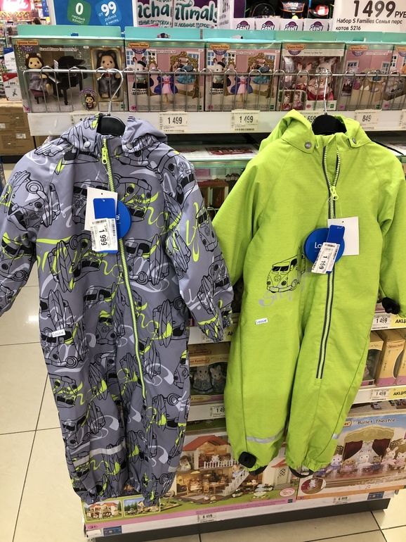 Детская одеждаВисят от 80 до 92. Цена приятнее на желтый 1199, но у серого за 1999 плотнее ткань. Показатели скромные 1000/1000.