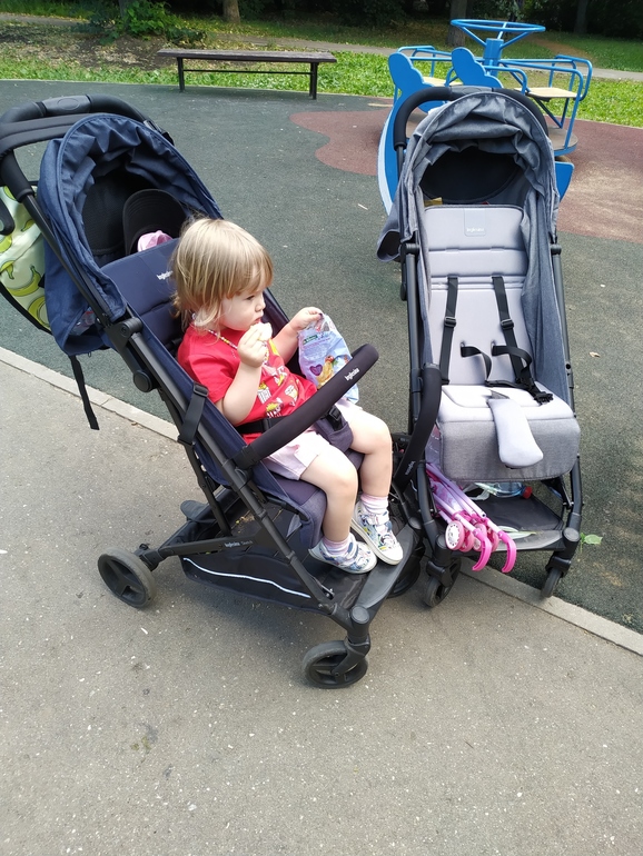 Когда мы уезжаем из дома на целый день плюс в магазин надо, то беру Снапа, там и корзина большая для покупок и место спать больше, но как же он меня бесит 🥵, табуретка какая то. В Инглесине вес ребенка не ощущается
