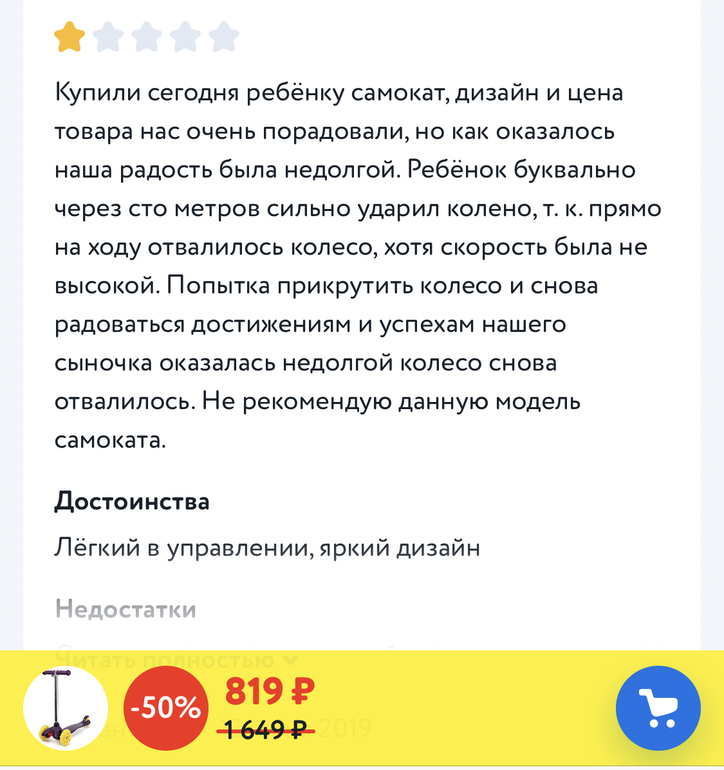 Отдельно удивляет цинизм. Как можно продавать товары с таким количеством отзывов про откручивающиеся болты колес??? Неужели Детский мир не в силах вернуть партию поставщику?
