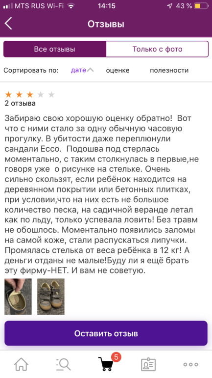 Любой отзыв основан на том, кто и как носит обувь (любую)) И ни один, в принципе, не является аксиомой)) Я своей покупала Натурино, ничего там не оторвалось, ни стерлось (тем более моментально) и не скользило))