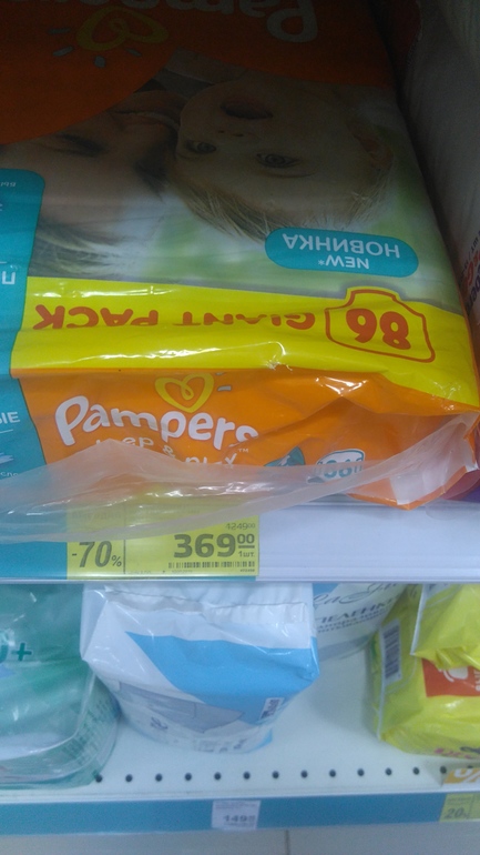 У нас только трусики гуны 44 штуки до 14 кг за 399 рублей были 2 пачки, и вечером муж ещё 1 купил. Больше ничего нет (