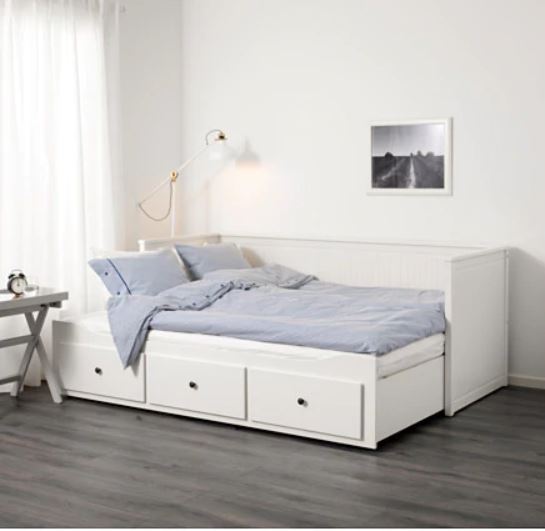 Мы брали в Икее кушетку с выдвигающимся спальным местом дочка 4 года спит вальготно ..можно и задаигать днём есть 2 ящика..мы брали без бортов есть с бортами(но дороже в 2 раза)