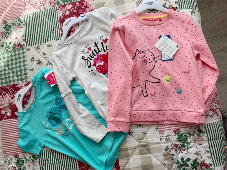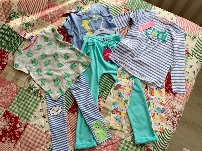 Остальное в садик.Шорты hm,лонг с Микки из детмира и комплект туника с лосинами из акулы.Вот кстати про этот комплект-я весной покупала такой же на размер меньше по полной цене.Качество ужас.Но!дочкин самый любимый был,до дыр сносили.И я подумала,что за 500 я его возьму.Не 1500 как весной😂🤦🏻♀️