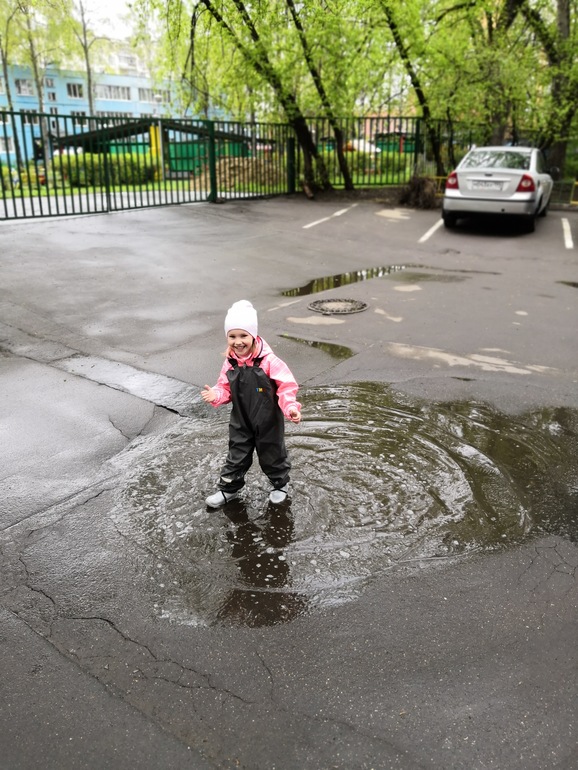 В лужи только резину, остальное всё промокнет. Сейчас в магазинах Рейма скидки 50% и полукомбез выходит тысячу рублей, я недавно и младшему и старшей взяла. Вот думаю ещё и куртку надо такую сыну)) или вообще целиковый резиновый комбез 🙈
