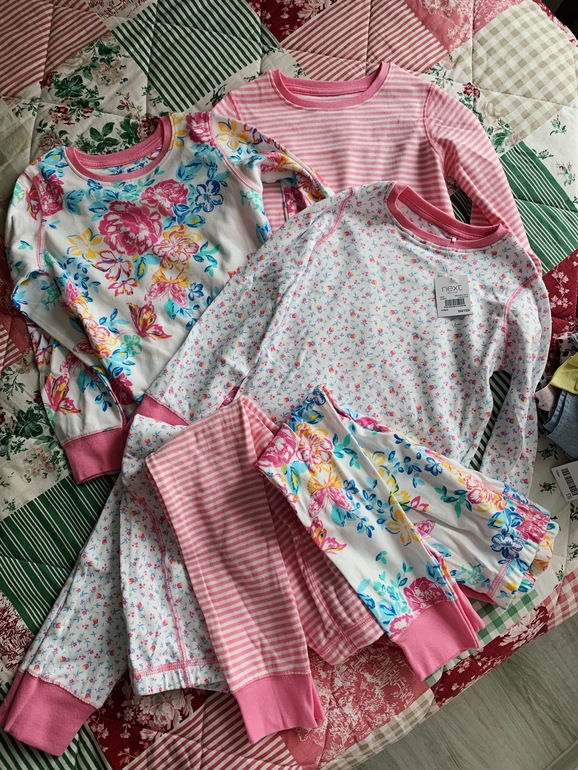 Пижамы.Я поздно конечно спохватилась,хотела другие.Но...сама виновата,хорошо что вообще нашла какие то.Беру каждый год.Мы донашиваем 3/4,сейчас взяла 4/5.Это на рост 110 с хорошим запасом,по мне так пижамы всегда очень большемерят