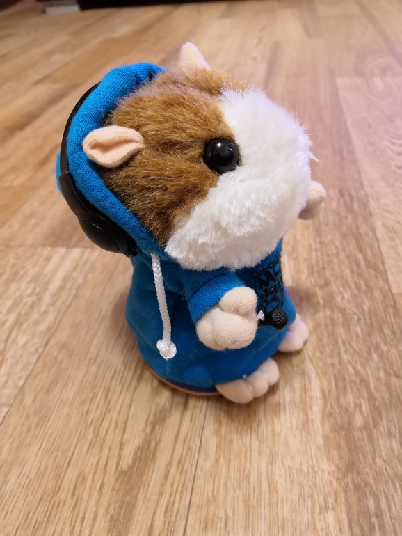 Хомяк-повторюшка. Раньше популярен был, везде продавали. Старшая с 6 месяцев синим беседы вела😂 но кошка все же сломала того хомяка через года полтора. Младшей с али заказывала.