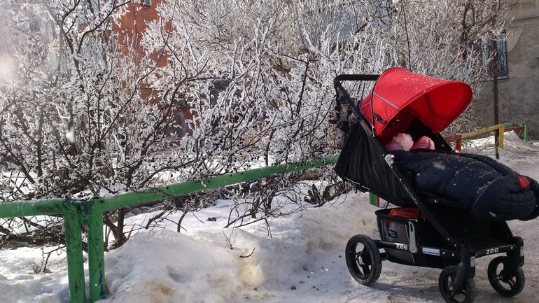 Там, где я не могла по снегокаше пройти, коляска ехала и меня тащила ))