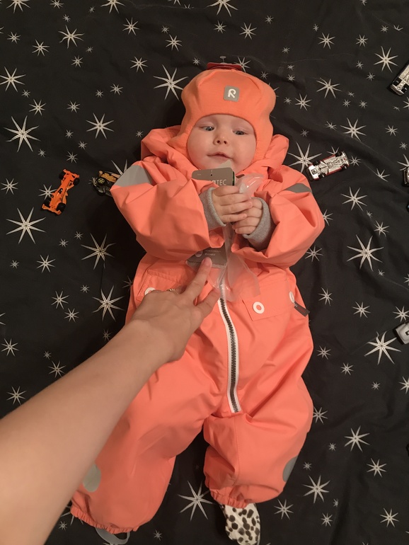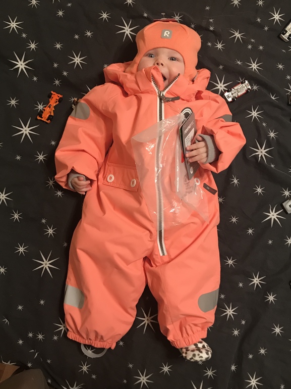 Детская одеждаОй девочки, я не знаю зачем купила. А с другой стороны может и нормально? Покупала за недорого, вот думаю нужен данный комбез(деми 80гр) и шлем или нет. Дано, ребёнку на данный момент 7 мес, в сентябре исполнится 9 мес, размер 74, шапка 46, короче 9-12 мес. Бахилы к нему купить не проблема, у реймы есть такие. весной комплект скорее всего будет уже мал)))