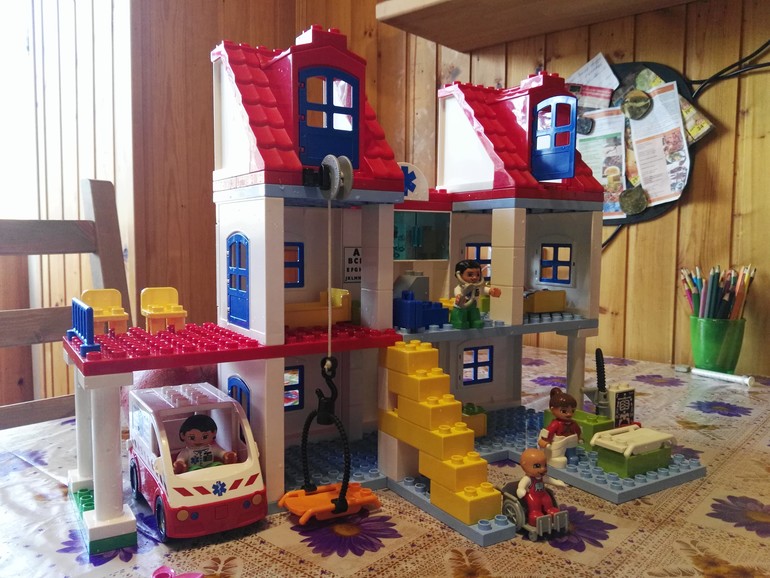 Б/у, за 2200, потому что новый ппц ценник, а дочка скорые любит) там лысый младенец в коляске, медицинский шкафчик, и вообще) у нас еще и медицинский вертолет есть)